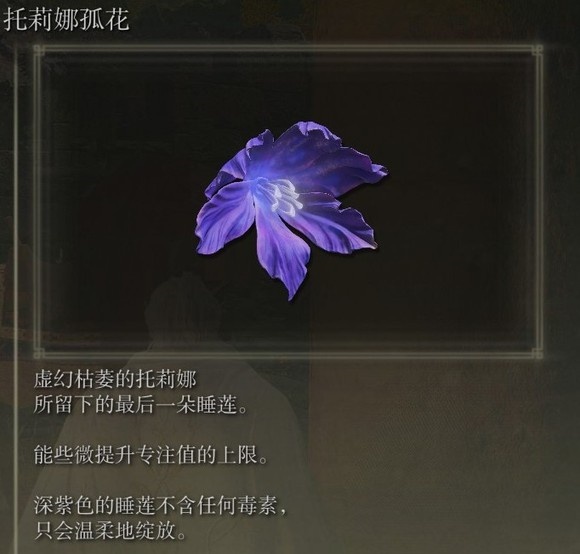 托莉娜孤花是艾尔登法环黄金树幽影中的魔法道具,很多玩家还不清楚如何获得托莉娜孤花,我们需要在地图南边的青蓝海岸进行调查,以下是艾尔登法环托莉娜孤花获得方法。