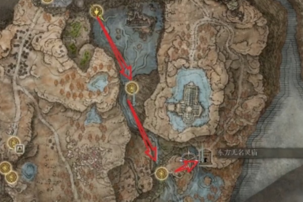 4、一路向下来到平台,与石棺互动传送到「幽影亚坛」,在那里找到「东方无名灵庙」。
