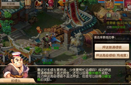 1、高级押镖一次要50万银两,而获取的收益为白银宝箱,抽到的都是押金数额都能买到的东西。