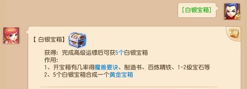 4、普通镖银是押金五万银币,押送成功后返还十五万。高级镖银给五个银箱子。