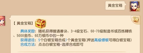 3、5个白银宝箱合成一个黄金宝箱,获得的奖励都不足50万,个别抽到60万银两的可以回本,所以没必要。