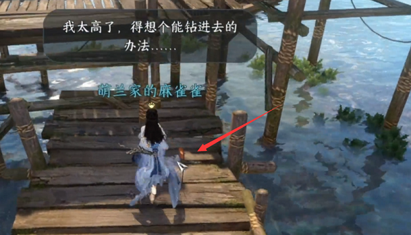 7、这样就能钻到桥底下打开宝箱了,宝箱里就是第一位密码。