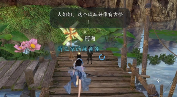 6、跟着第一位密码指引来到图示地点,这里有个风车,交互后能变成小孩。