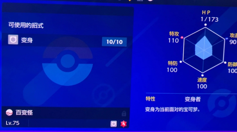 宝可梦朱紫中有很多宝可梦有着独特的特性,百变怪有着跟其名字一样的能力可以变身成对方的宝可梦,自己的越强对方也会越强,组团打的话房主提前准备一级鲤鱼王,单刷的话带高等级低种族的精灵。