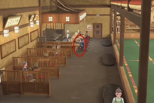 9、接下来继续和npc对话,确定要挑战馆主,会发现在旁边穿黑色西装吃饭的大叔就是馆主,然后打败馆主就可以了。