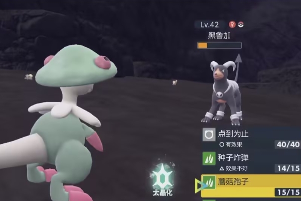 5、月亮伊布的太晶属性是恶属性,还是用斗笠菇去抓捕,可以继续用抓捕黑鲁加的招式来抓捕月亮伊布,最后仍球就可以抓捕到了。
