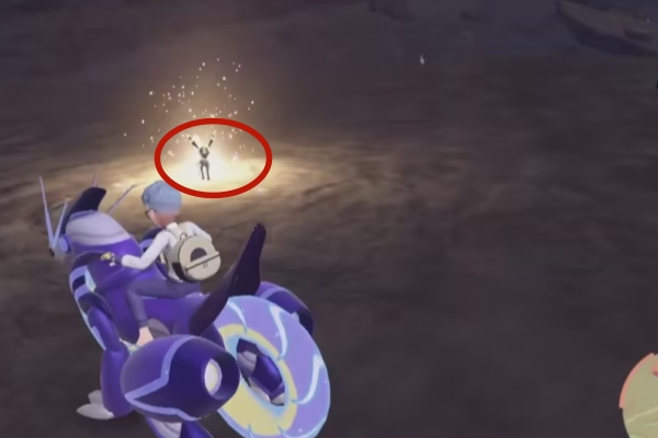 4、第二只宝可梦在这个山洞里最高的平台上,需要找一找哪个平台最高,爬上去就可以看到一只太晶月亮伊布。
