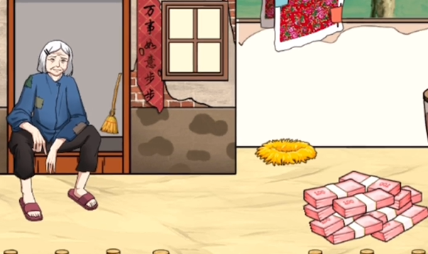 在沙雕出击游戏中,看望老人关卡,奶奶不缺钱,奶奶想让孙儿有空的时候多回来看看她,送钱也是无法通关的,需要给奶奶购买棉大衣。